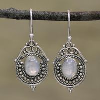Rainbow Moonstone and Sterling Silver Earrings from India 'Majestic Circles' Item ID: 2671791142