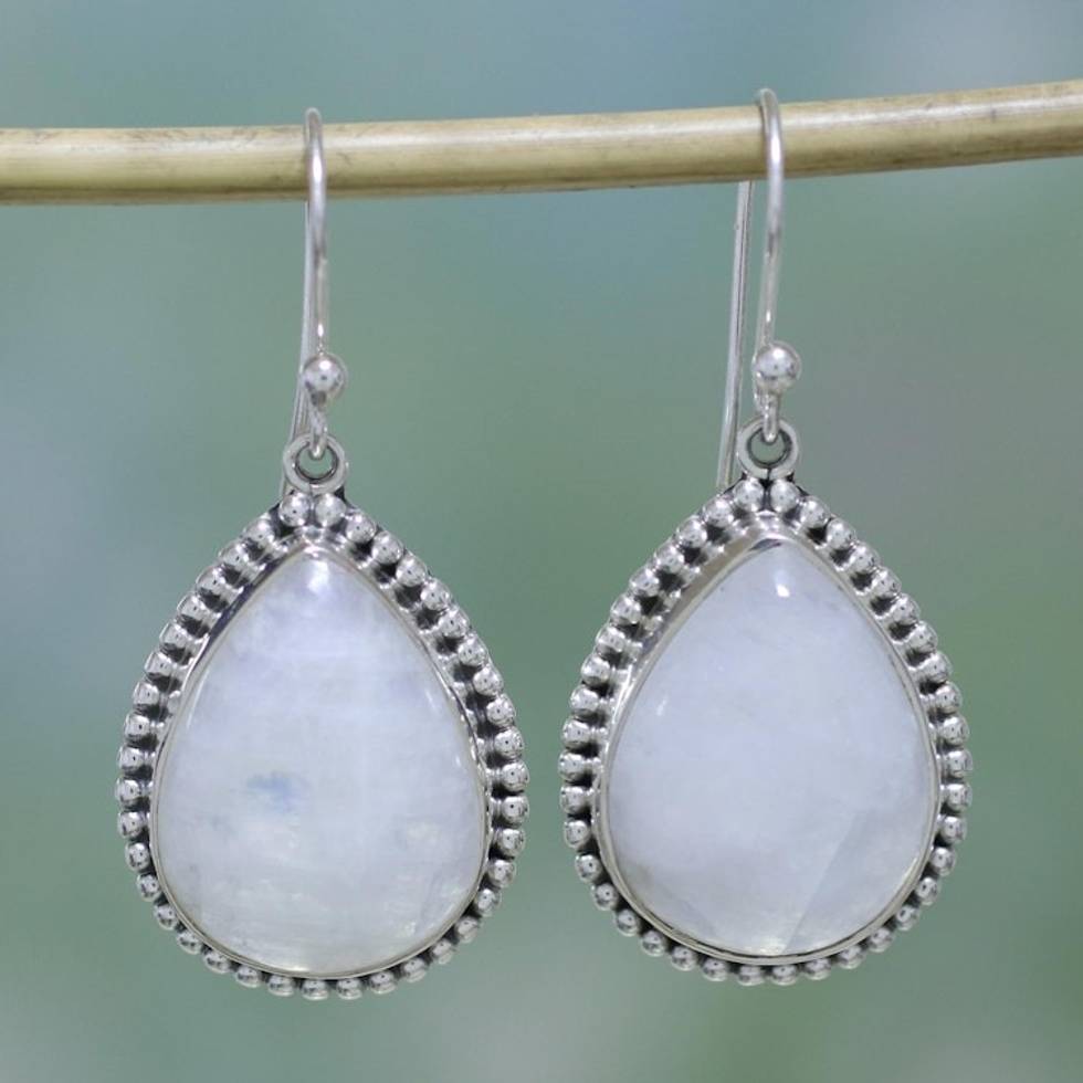 Rainbow Moonstone and Sterling Silver Earrings from India 'Mystical Charm' Item ID: 2671618712