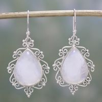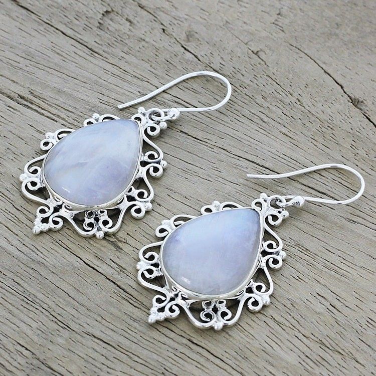 Rainbow Moonstone and Sterling Silver Earrings from India 'Spiral Drops' Item ID: 2671790789