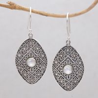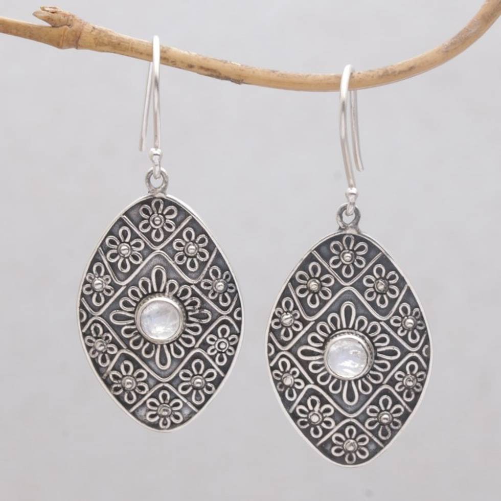 Rainbow Moonstone and Sterling Silver Floral Dangle Earrings 'Shield of Daisies' Item ID: 2671732852