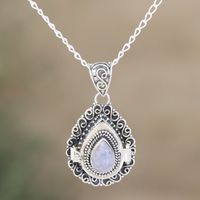 Rainbow Moonstone and Sterling Silver Locket Necklace 'Question Mark' Item ID: 2671788317