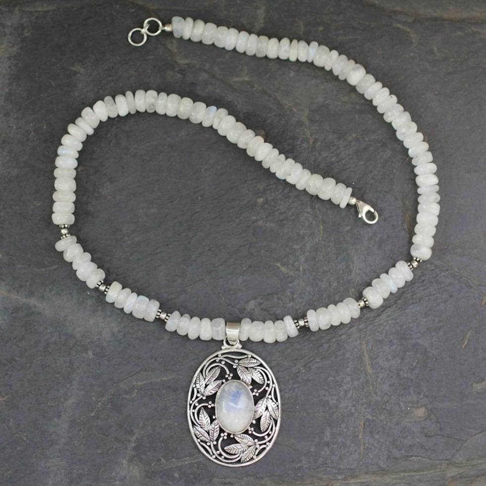 Rainbow Moonstone and Sterling Silver Necklace 'Mughal Garden' Item ID: 2671793942