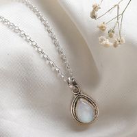 Rainbow Moonstone and Sterling Silver Pendant Necklace 'Halo Effect in White' Item ID: 2671789173