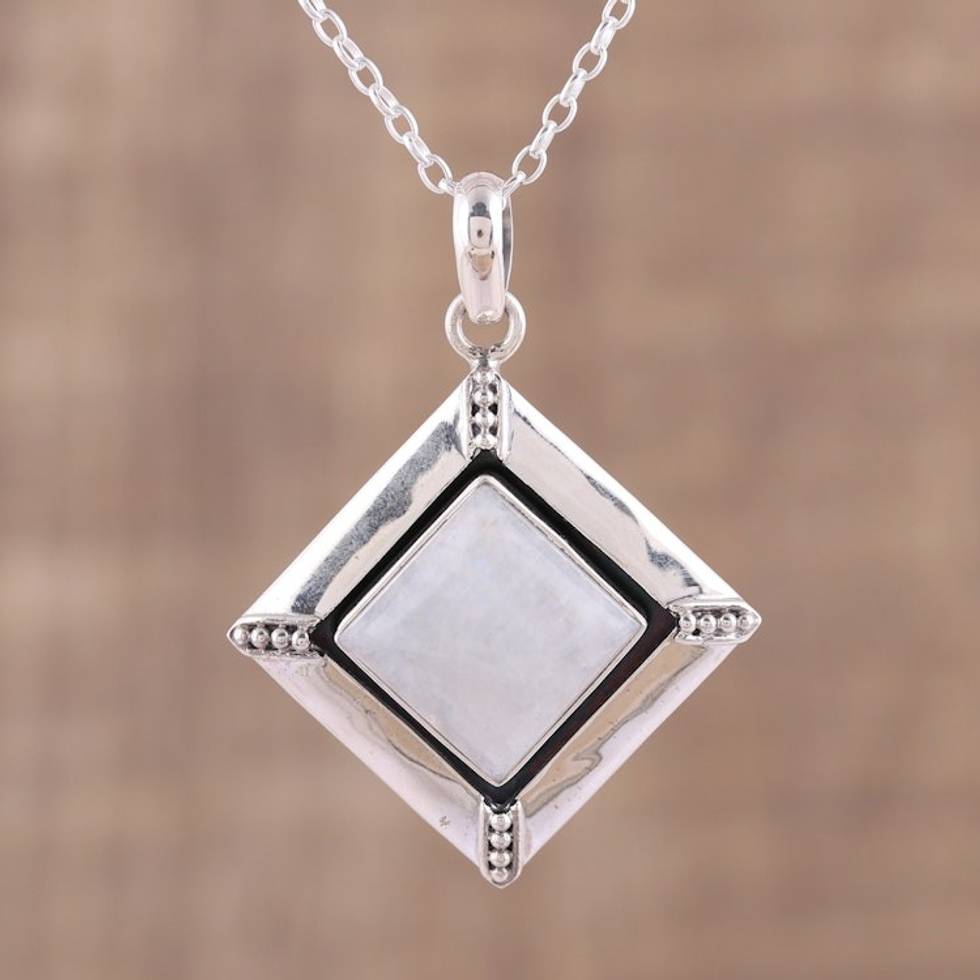 Rainbow Moonstone and Sterling Silver Pendant Necklace 'Heavenly Kite' Item ID: 2671790147