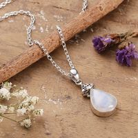 Rainbow Moonstone and Sterling Silver Pendant Necklace 'Icy Droplet' Item ID: 2671791361