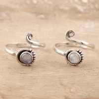 Rainbow Moonstone and Sterling Silver Toe Rings Pair 'Gemstone Spiral in Mist' Item ID: 2671787978