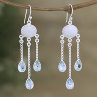 Rainbow Moonstone Blue Topaz Sterling Silver Dangle Earrings 'Exquisite Drops' Item ID: 2671787106
