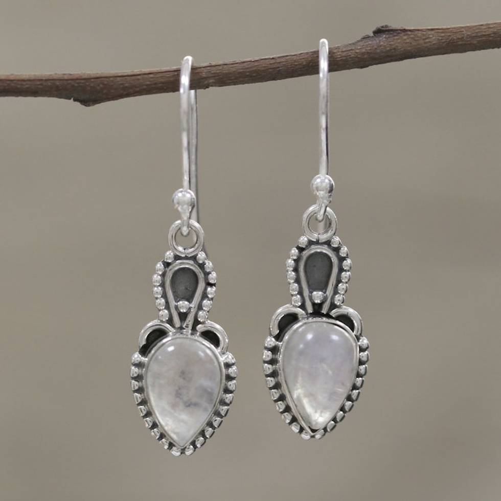 Rainbow Moonstone Cabochon and Sterling Silver Earrings 'Earthly Crown' Item ID: 2669924535