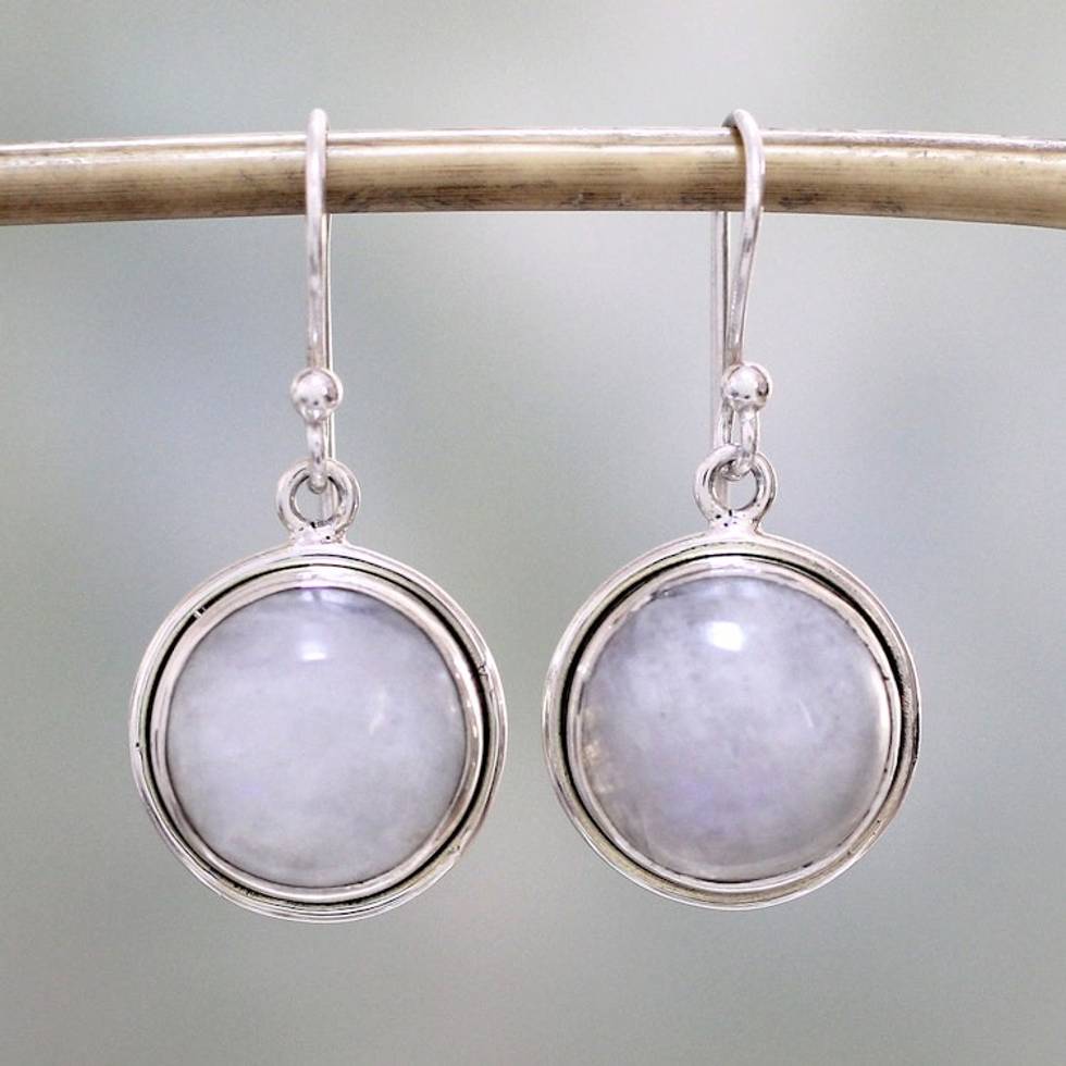 Rainbow Moonstone Dangle Earrings by Indian Artisans 'Alluring Mist' Item ID: 2671791819