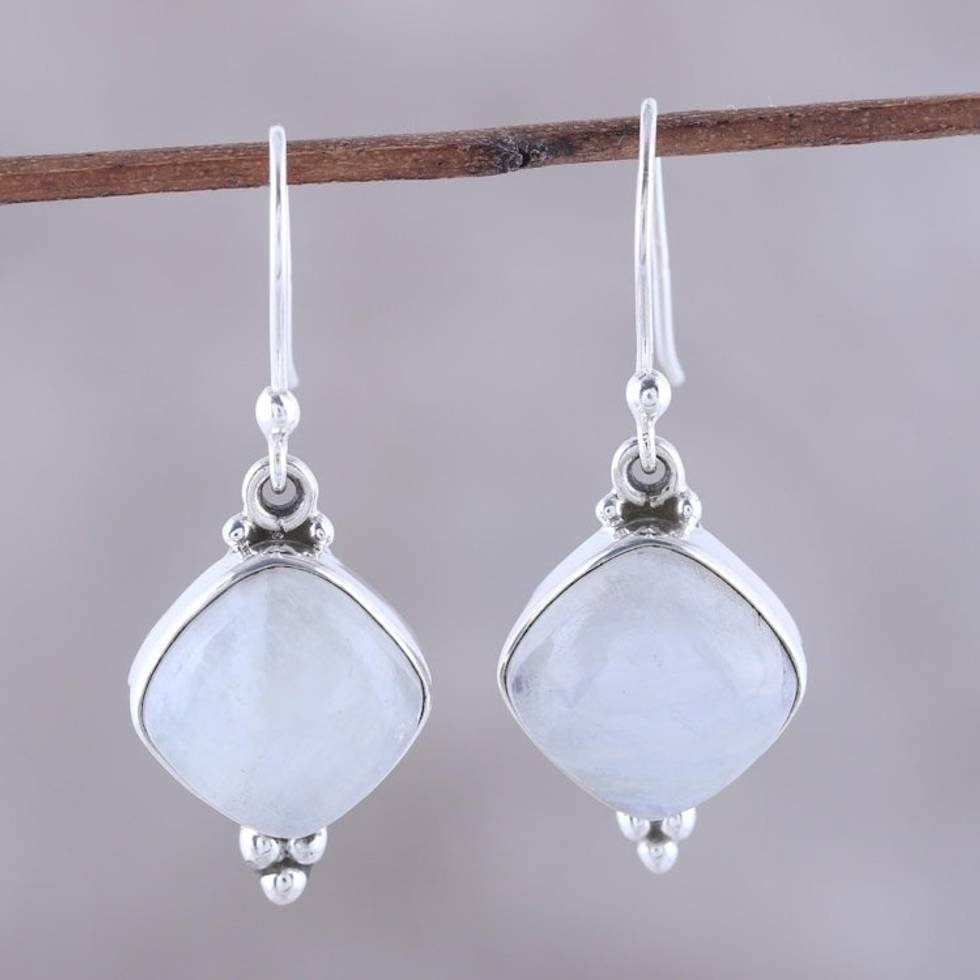 Rainbow Moonstone Dangle Earrings from India 'Gleaming Grandeur' Item ID: 2671792794