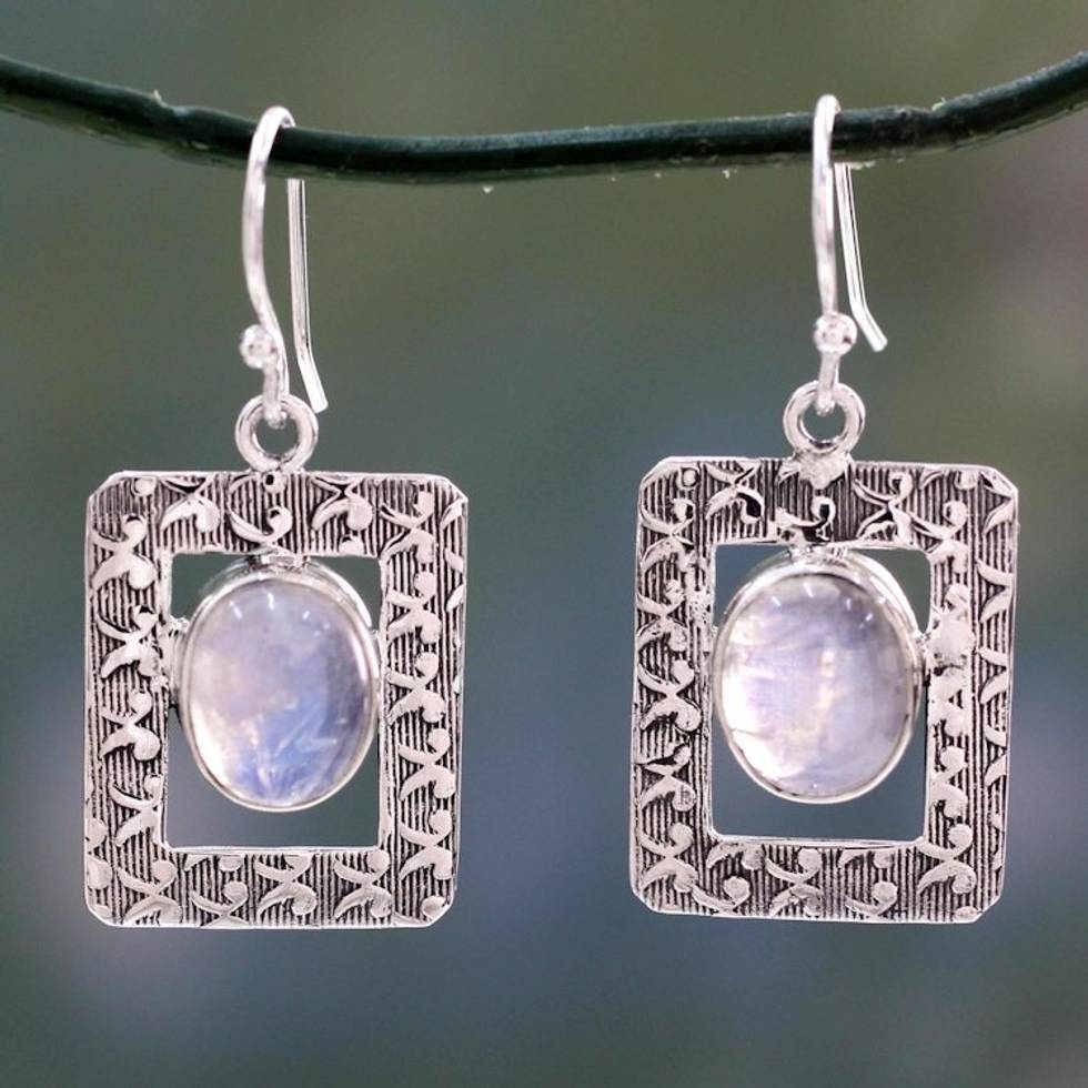 These moonstone earrings are great for daily wear. I really love the checkerboard cut stones! The weight of these earrings is just right for my sensitive ears.