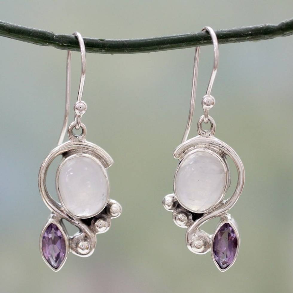 Rainbow Moonstone Earrings with Amethyst And Silver 'Yours Forever' Item ID: 2669923788
