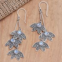 Rainbow Moonstone Feather-Motif Dangle Earrings 'Feather Charm' Item ID: 2671747069