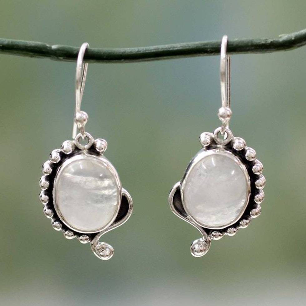 Rainbow Moonstone Jewelry Indian Sterling Silver Earrings 'Indian Paisley' Item ID: 2676664047