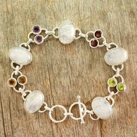 This is gorgeous. I wear it every day and receive compliments on it. Peridot and amethyst are some of my favorite gemstones and I love the rainbow moonstone with this. I bought the matching earrings as well. I'm a very happy customer!