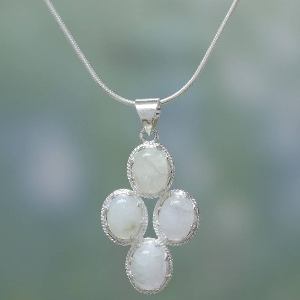 Rainbow Moonstone Necklace in Sterling Silver from India 'Morning Frost' Item ID: 2671794677