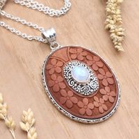 Rainbow Moonstone Pendant Necklace with Floral Motif 'Portrait of a Lady' Item ID: 2671747003