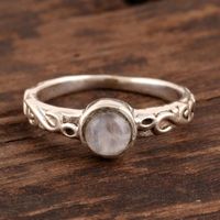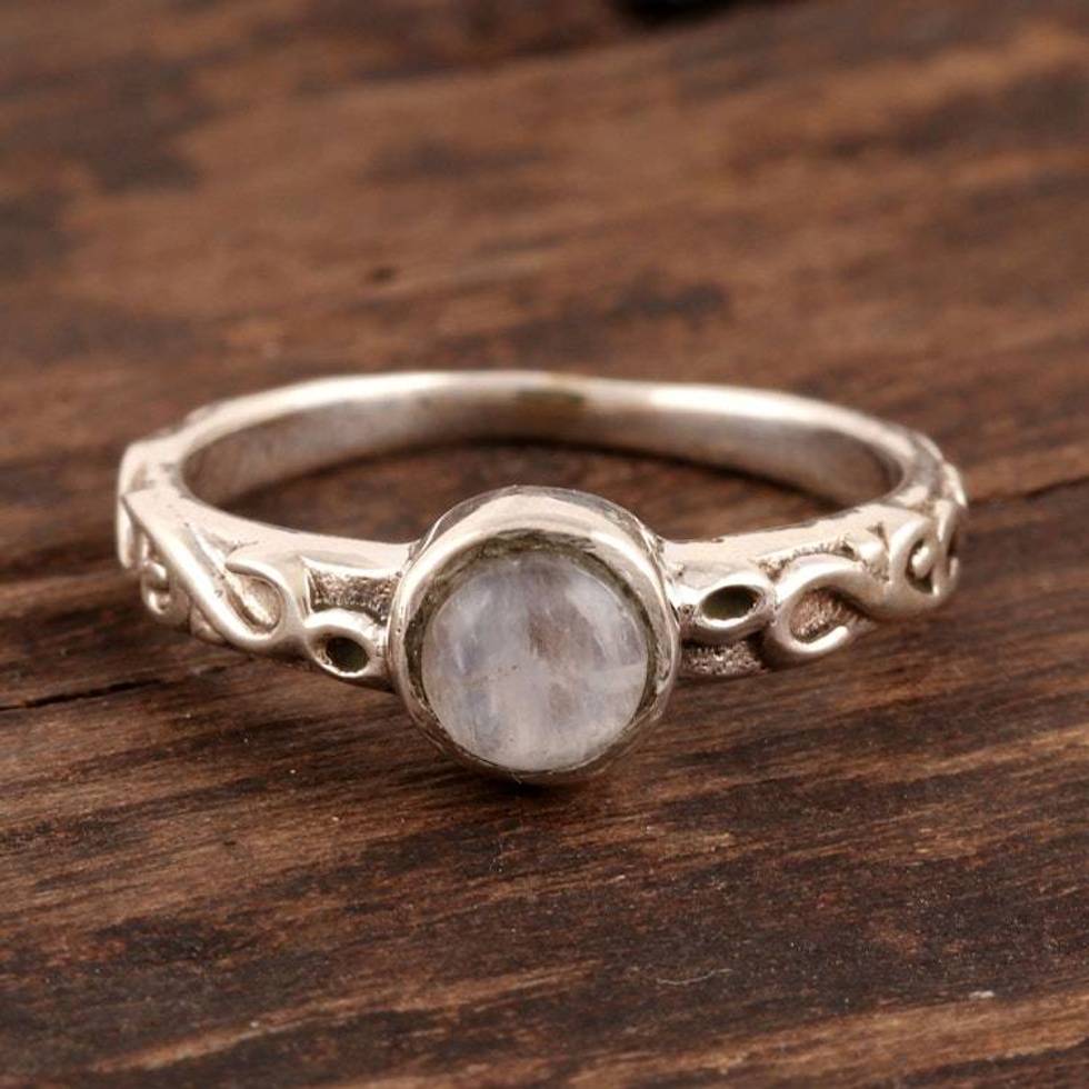 Rainbow Moonstone Solitaire Ring Crafted in India 'Misty Globe' Item ID: 2676665092