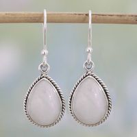 Rainbow Moonstone Teardrop Dangle Earrings from India 'Rainbow Morning' Item ID: 2676664068