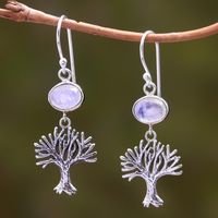 Rainbow Moonstone Tree Dangle Earrings from Bali 'Enlightenment Tree' Item ID: 2671736476