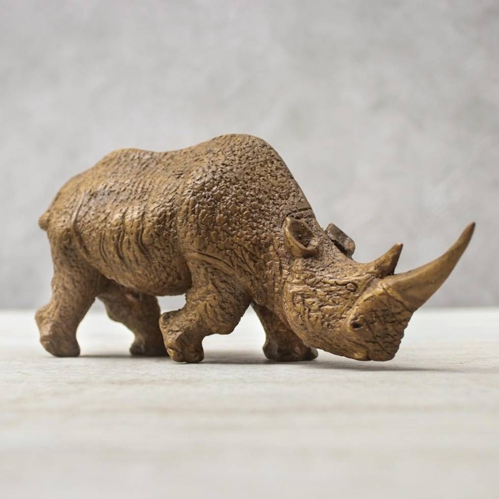 Raintree Wood Rhinoceros Sculpture from Thailand 'Respectful Rhino' Item ID: 2671799582