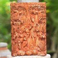 Ramayana-Themed Cempaka Wood Relief Panel from Bali 'Sita and Hanuman' Item ID: 2671735527