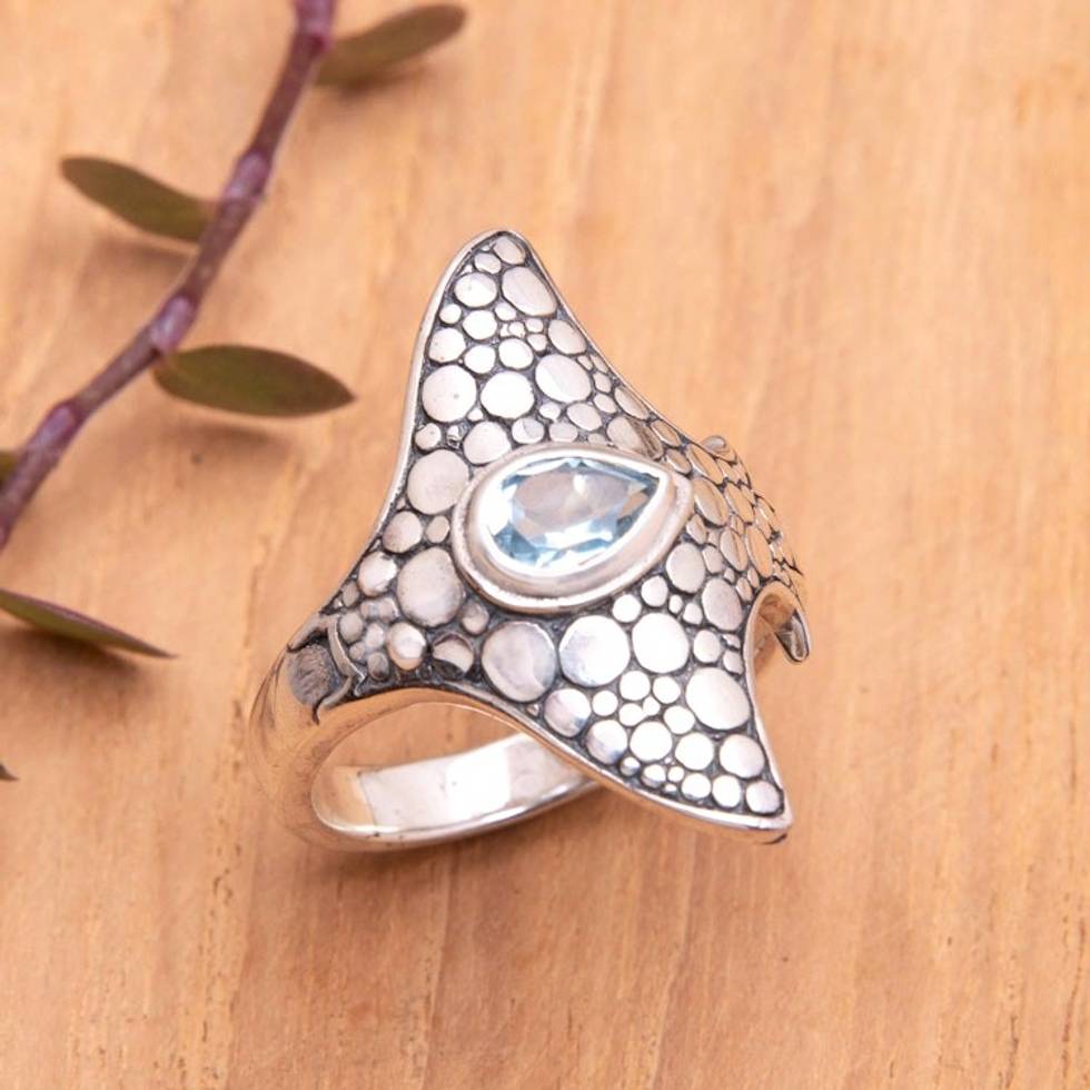 Ray-Themed Sterling Silver Cocktail Ring with a Blue Topaz 'Loyal Ray' Item ID: 2669921500