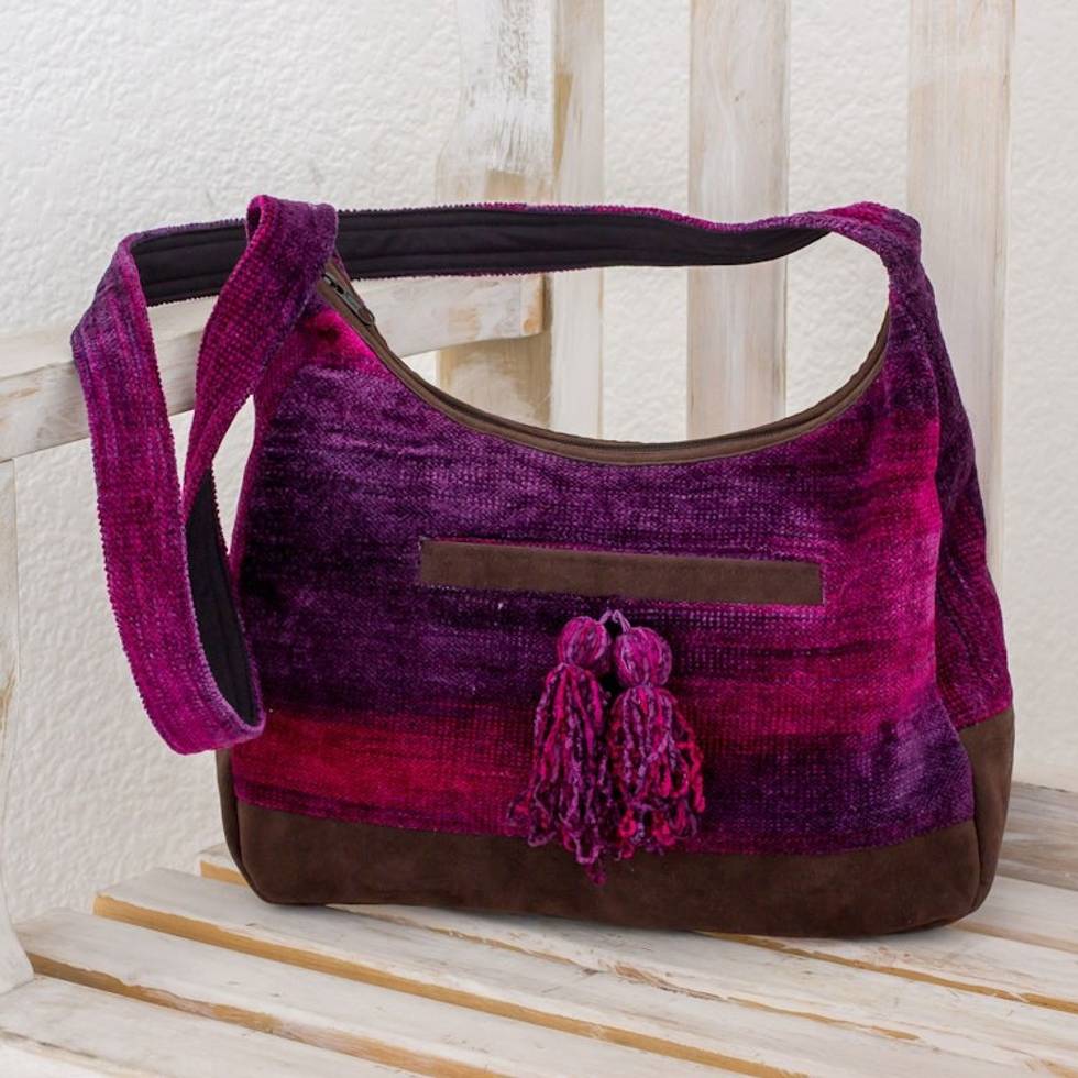 Rayon and Cotton Blend Hobo Bag in Purple from Guatemala 'Magical Day' Item ID: 2669933604