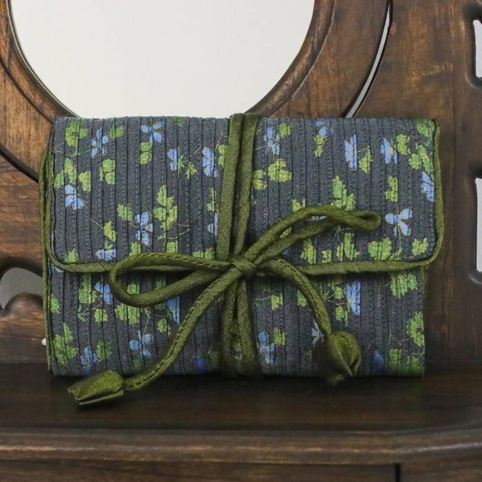 Rayon Blend Jewelry Roll with Floral Motifs from Thailand 'Traveling Fashion' Item ID: 2671640943