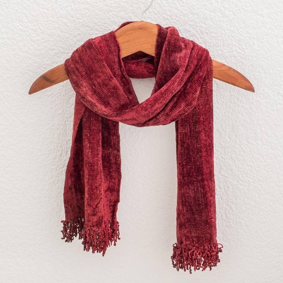 Rayon Chenille Scarf 'Scarlet Dreamer' Item ID: 2669933088