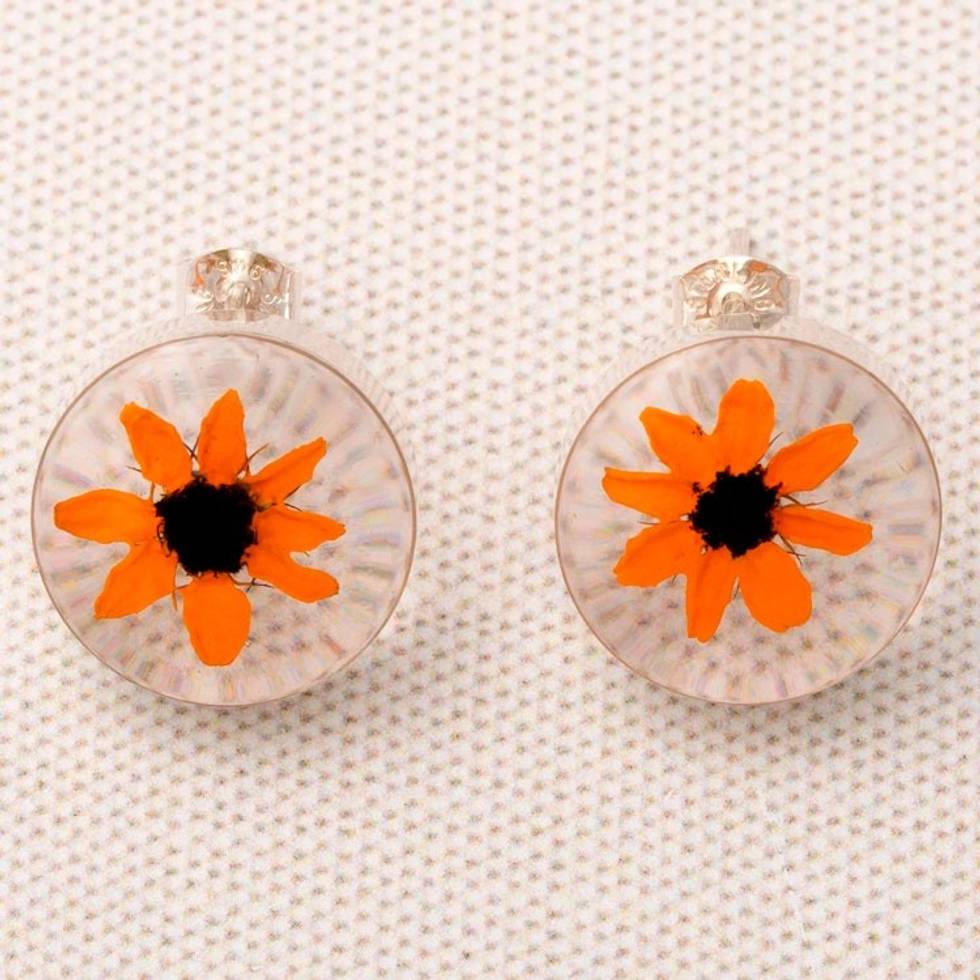 Real Flower Resin Stud Earrings with Sterling Silver Accent 'Sweet Bloom' Item ID: 2671796436