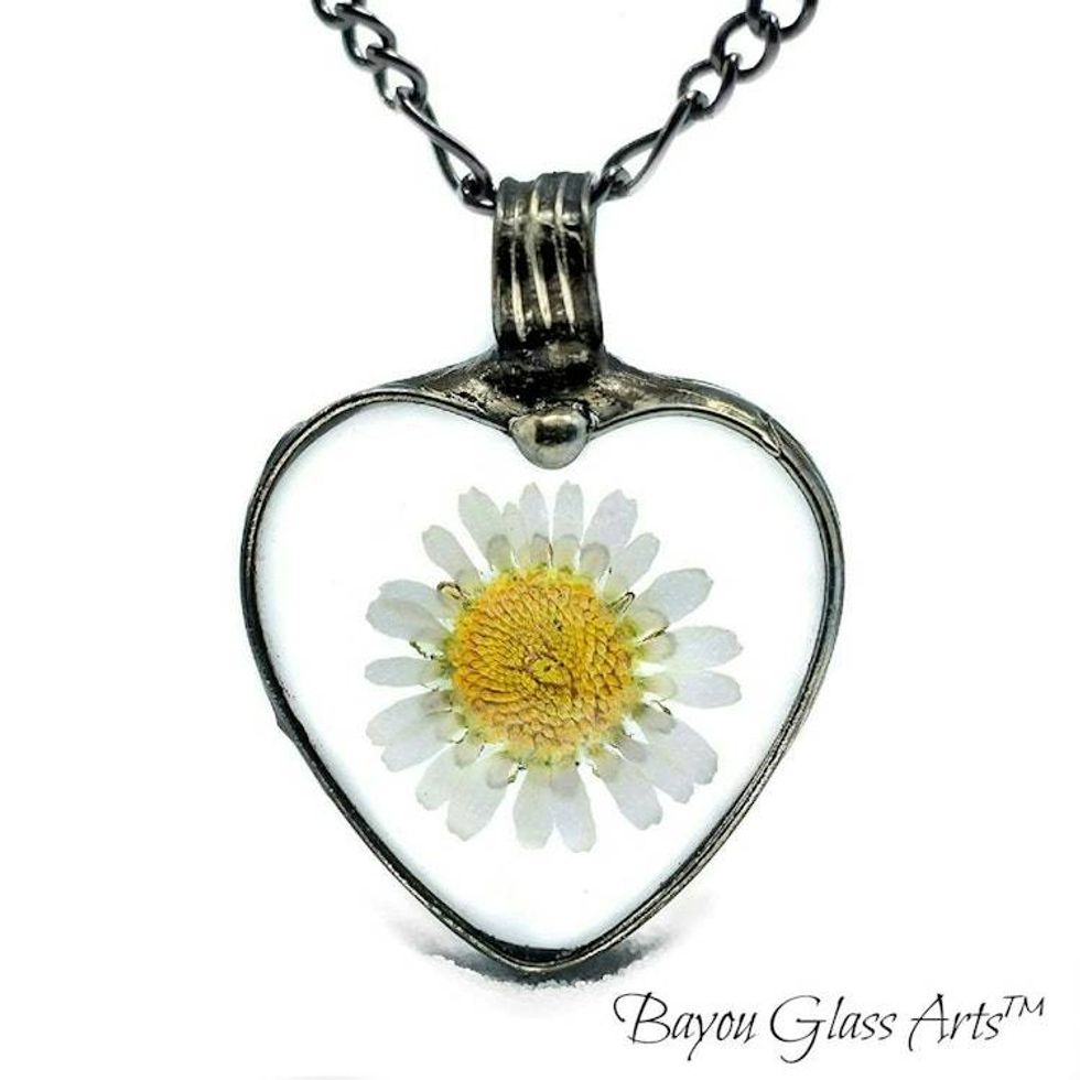 Real Pressed Flower Daisy Pendant Necklace for Women, Stained Glass Jewelry Item ID: 2670167745