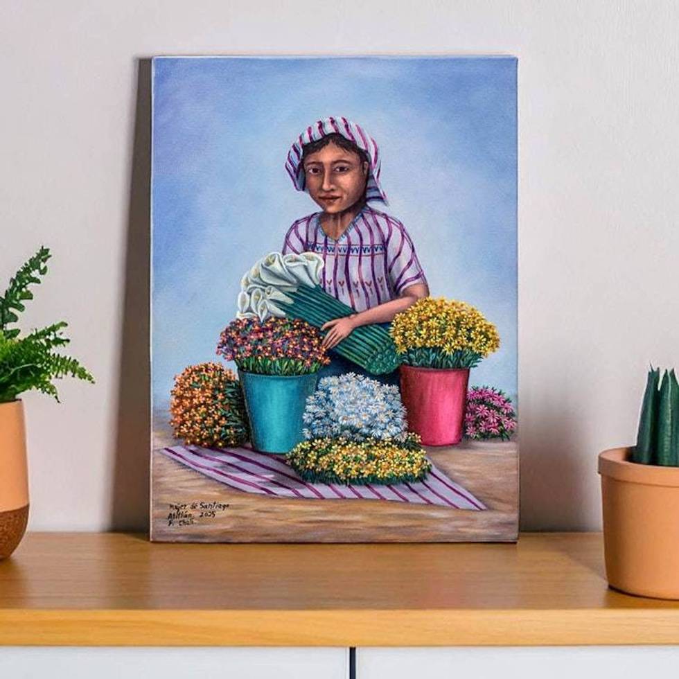 Realist Oil Portrait of Female Flower Vendor from Guatemala 'Woman from Santiago Atitlan' Item ID: 2676659691
