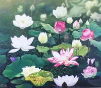 Realist Painting of Pink and White Lotus Flowers 2019 'Lotus at Dawn' Item ID: 2669889537