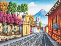 Realist Signed Guatemala Village Panting 'Calle de los Pasos' Item ID: 2671779164