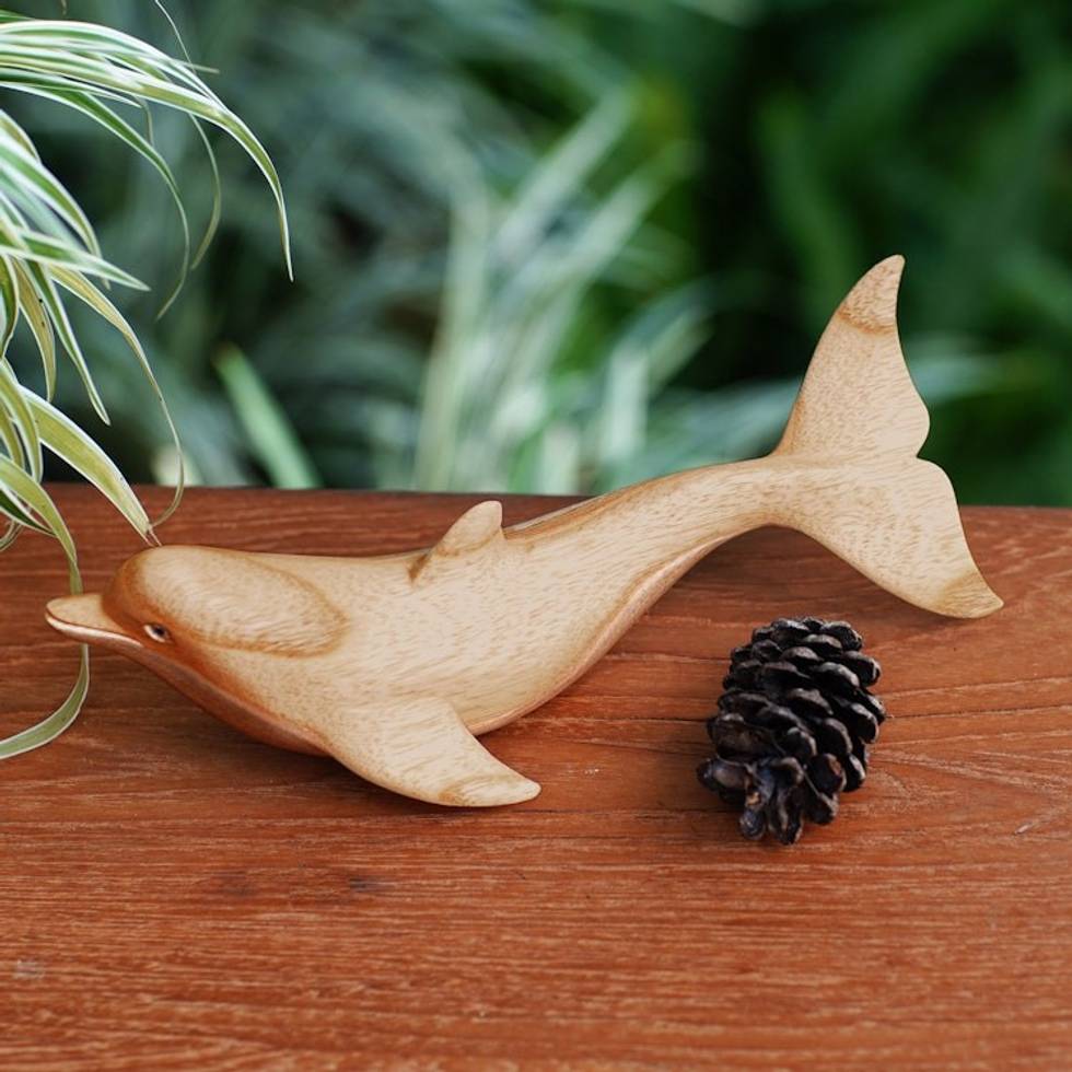 Realistic Artisan Carved Bottle Nose Dolphin Wood Sculpture 'Bottle Nose Dolphin' Item ID: 2671472946
