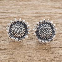 Realistic Sunflower Earrings in Sterling Silver 'Flourishing Sunflowers' Item ID: 2676659696