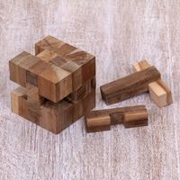 Reclaimed Teak Wood Puzzle Cube from Bali 'Cube Quiz' Item ID: 2669891623