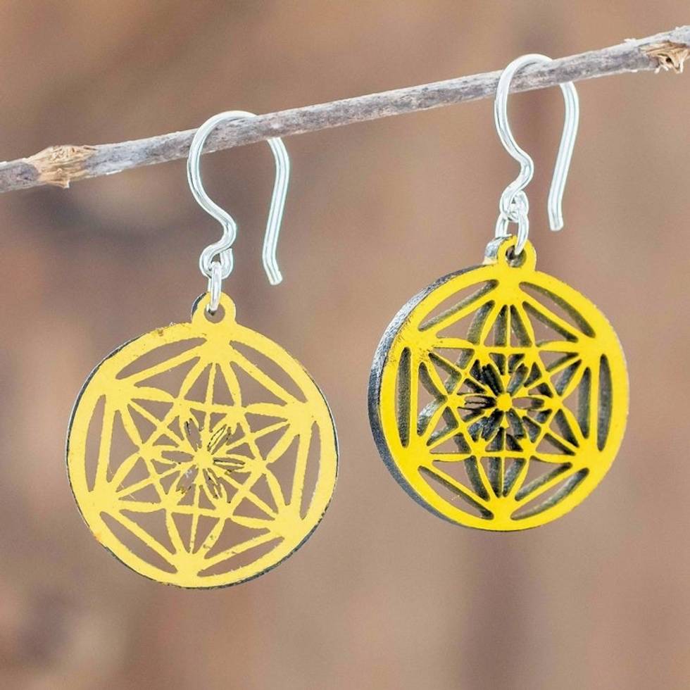Reclaimed Wood Carved Star Earrings in Yellow from Mexico 'Yellow Stellar Magic' Item ID: 2671772507