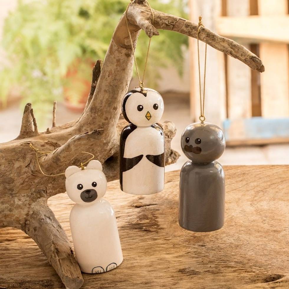 Reclaimed Wood Ornaments from Guatemala Set of 3 'Sweet Arctic' Item ID: 2671772443