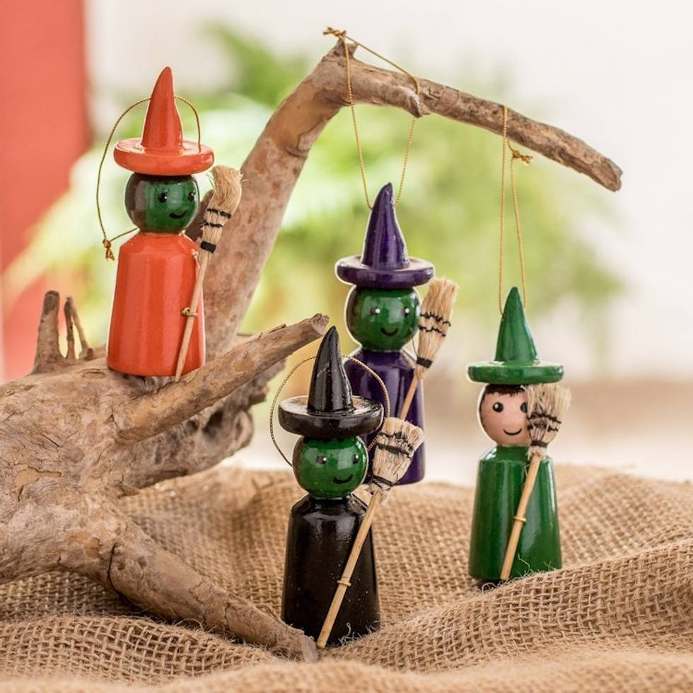 Reclaimed Wooden Ornaments from Guatemala Set of 4 'Halloween' Item ID: 2671772519