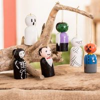 Reclaimed Wooden Ornaments from Guatemala Set of 6 'Trick or Treat' Item ID: 2671771873