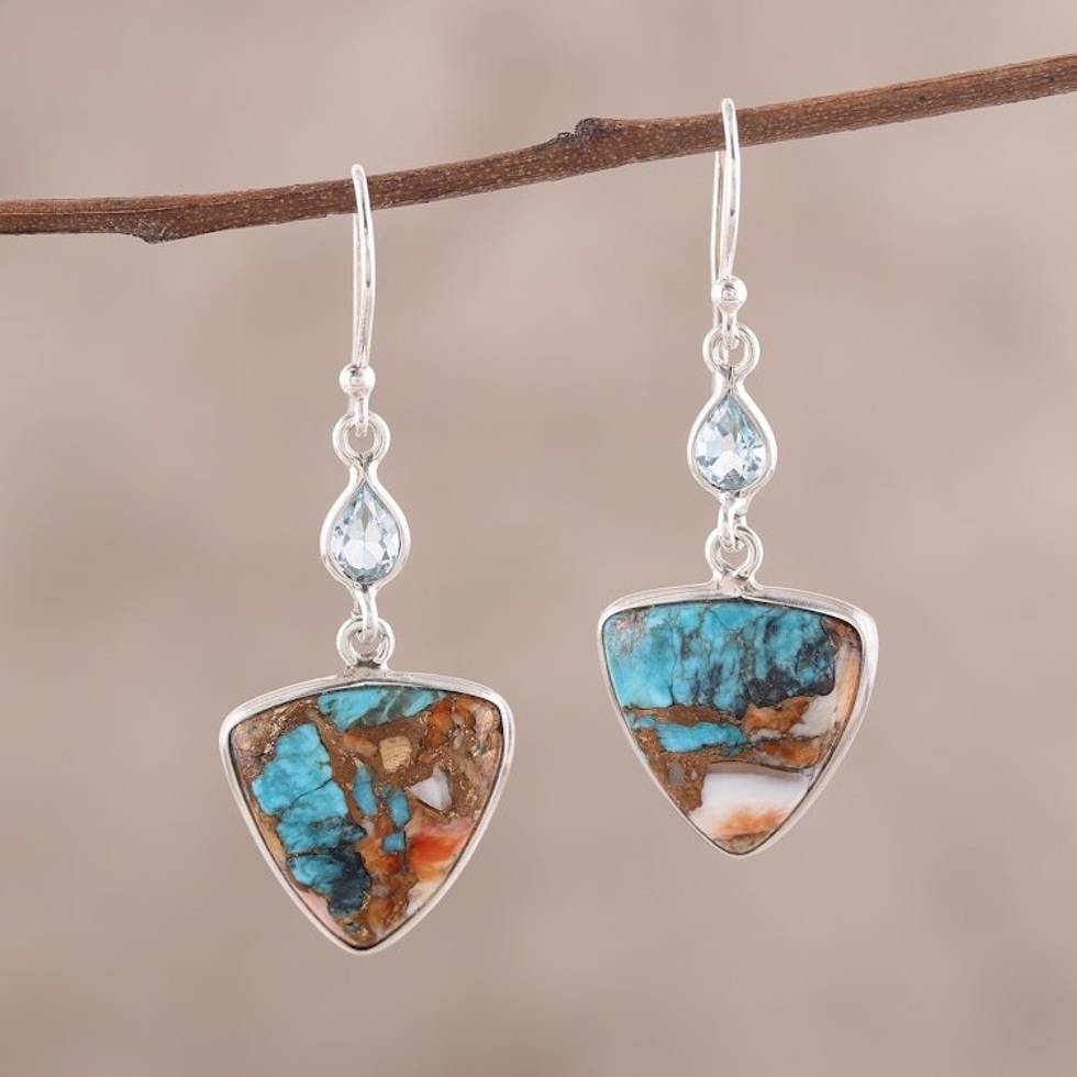 Recon. Turquoise and Blue Topaz Dangle Earrings 'Royal Colors' Item ID: 2671817987