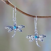 Reconstituted Turquoise and Silver Earrings 'Enchanted Dragonfly' Item ID: 2671473551
