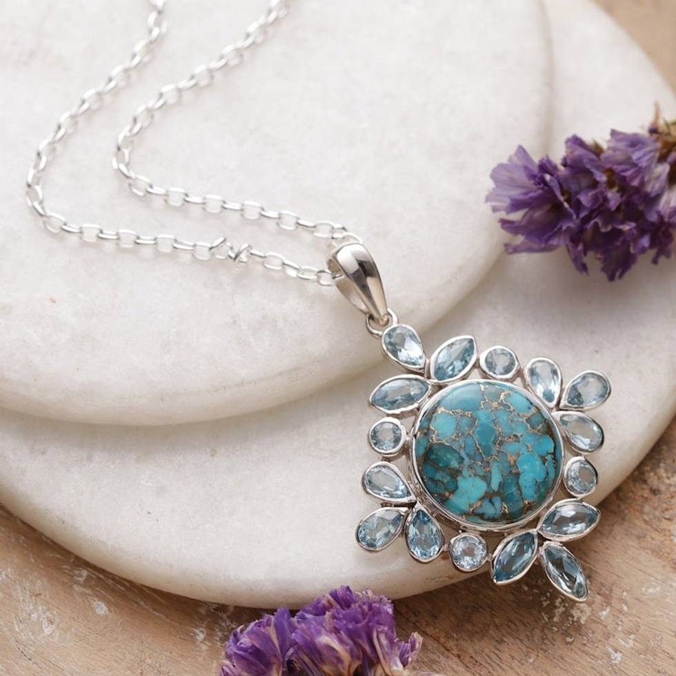 Reconstituted Turquoise Blue Topaz Silver Pendant Necklace 'Bold Fascination' Item ID: 2671781351