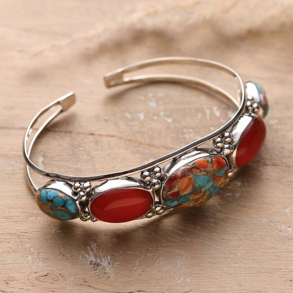 Reconstituted Turquoise Carnelian Silver Cuff Bracelet 'Lively Allure' Item ID: 2671622105
