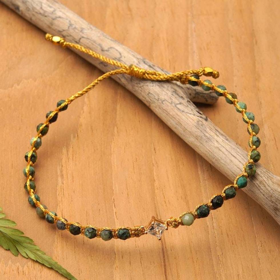Reconstituted Turquoise Recycled Glass Gold Accent Bracelet 'Be You' Item ID: 2676656816