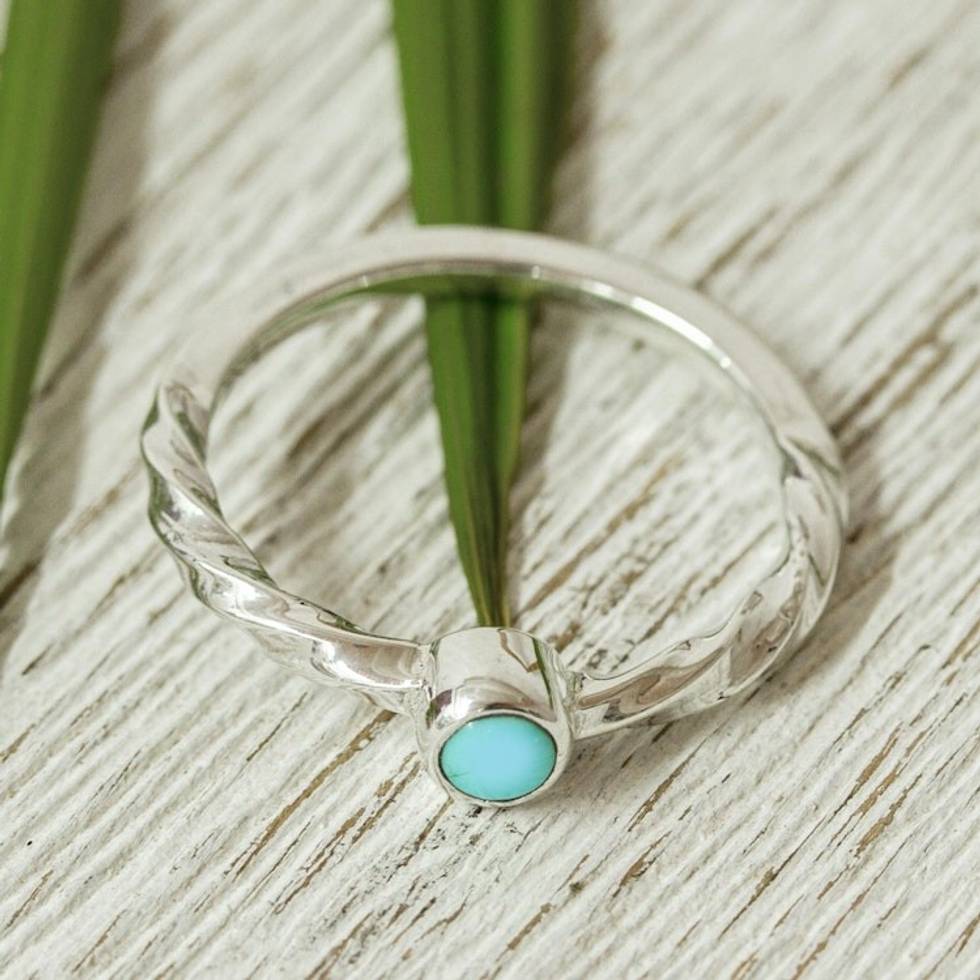 Reconstituted Turquoise Solitaire Ring from Mexico 'Elegant Essence' Item ID: 2669926930