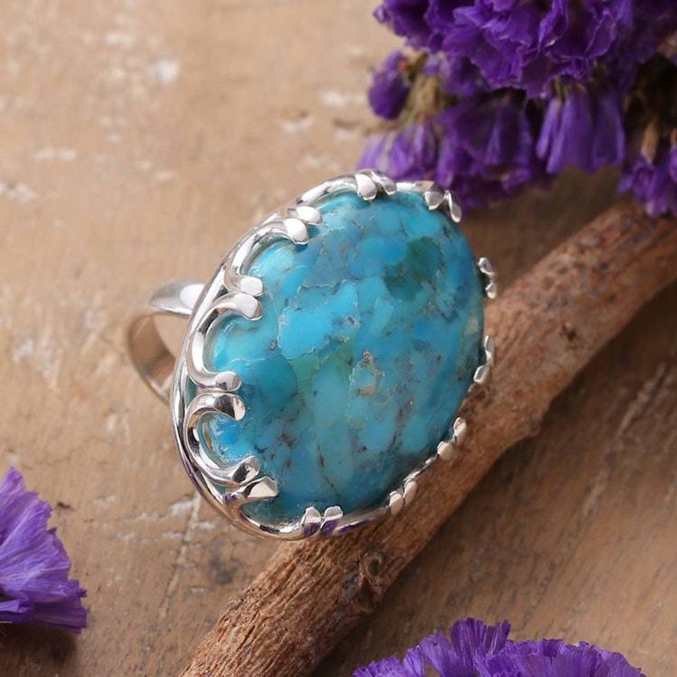 Reconstituted Turquoise Sterling Silver Cocktail Ring 'Vibrant Pool' Item ID: 2676665954