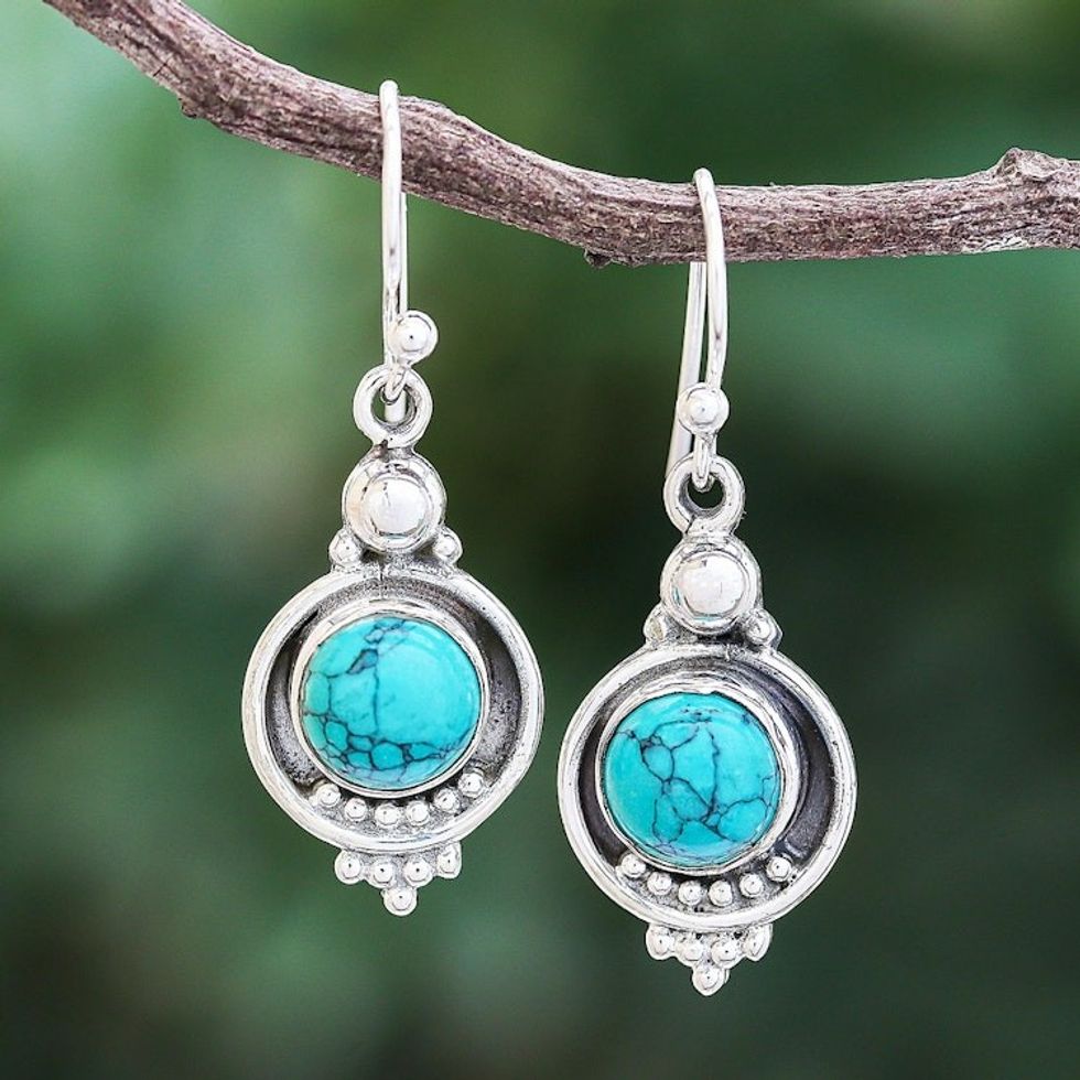 Reconstituted Turquoise Sterling Silver Dangle Earrings 'Classic Moon' Item ID: 2671800183
